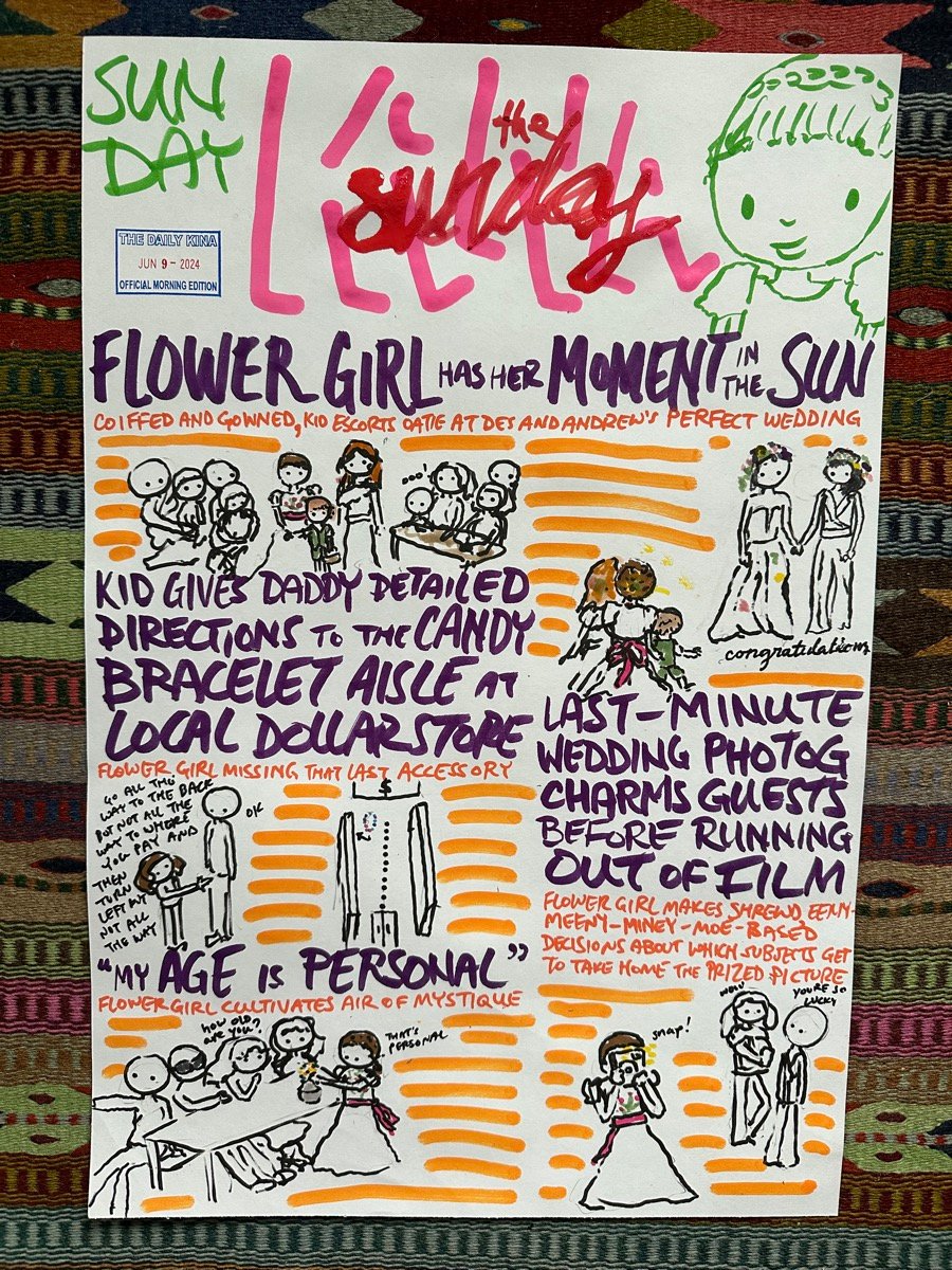 This was a good day. Kina was gorgeous, as were the brides. My sister was resplendent and I love her very much. I gave an outstanding speech that had just enough inside jokes about Riis Beach that it won the crowd over. There were cheeseburgers, and Kina walked Oatie down the aisle tossing flowers. Extremely good wedding, would attend again.