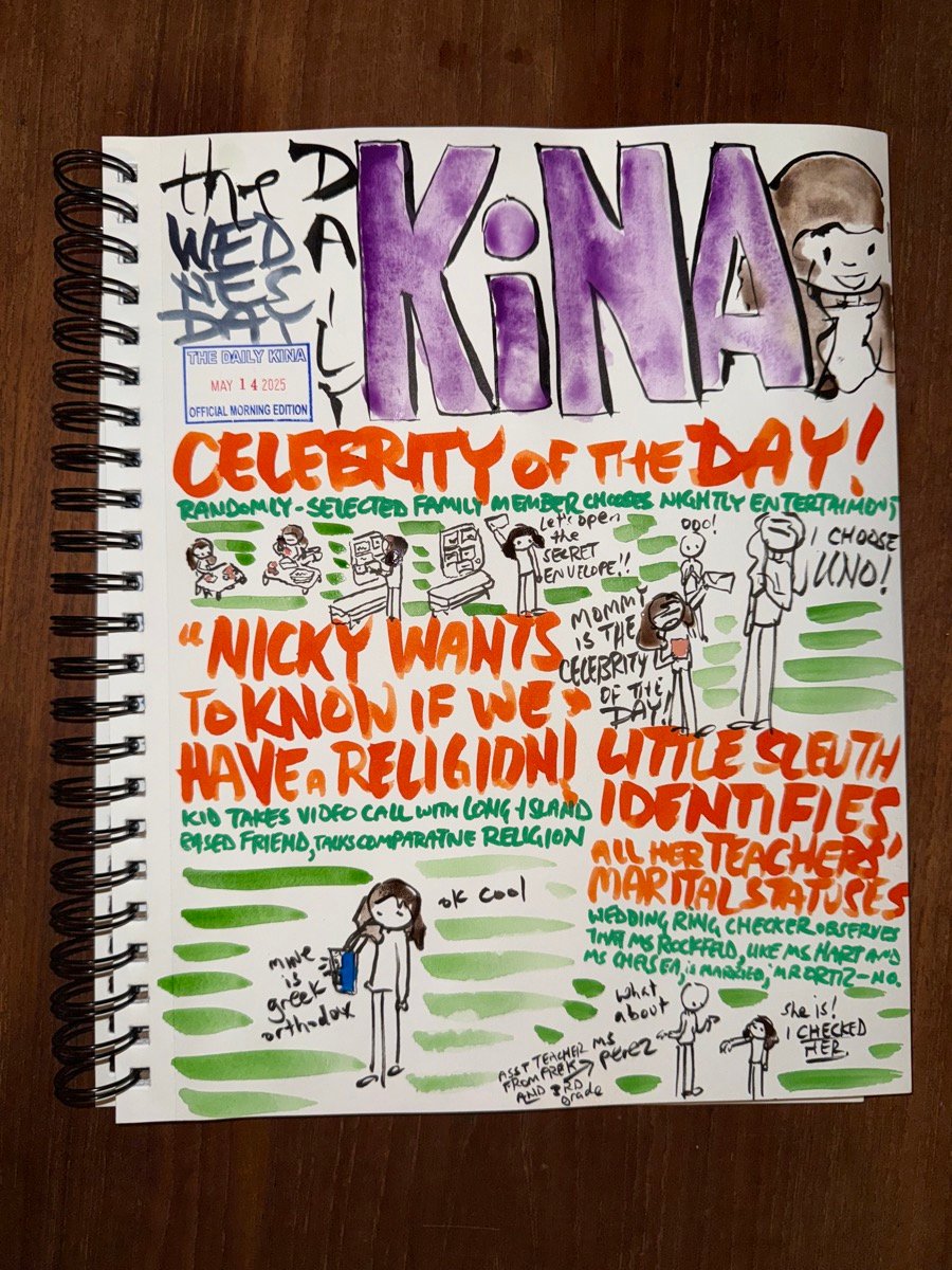 Kina brought this idea home from school, where a new classmate’s name is drawn daily from one of several enveloped tacked to the wall. Presumably, by the end of the school year, every student will have been the Celebrity of the Day. In our house, the rotation is much faster, and we have run out of new games to play.