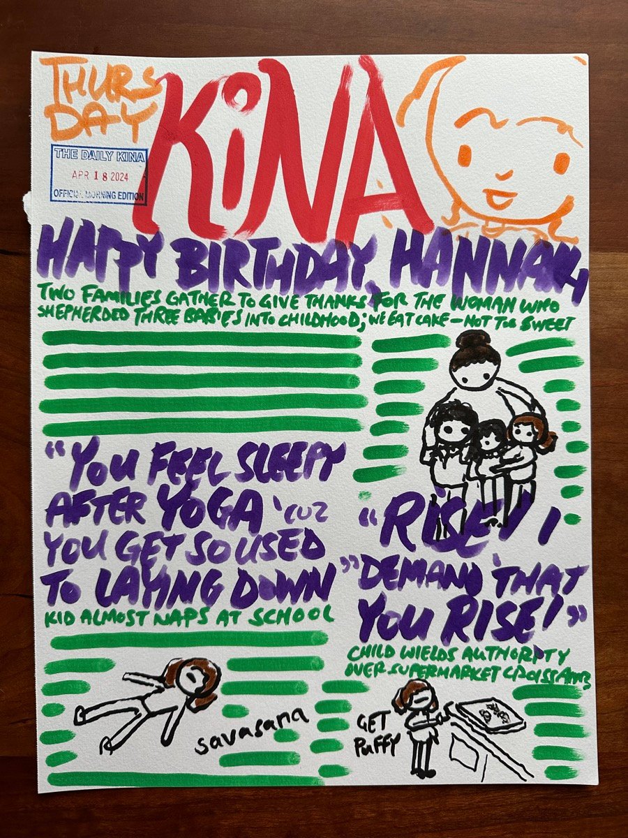 Hannah is probably the closest non-blood-related family that Kina has—or that I have, for that matter. She has raised this kid to be a fantastic human being in her own image, and I am profoundly grateful for her. She also shares a birth year with me, and so we spend lots of time complaining about various aches and pains and talking about how we like desserts that are not too sweet. Happy birthday to you, Hannah, and may your cake be none too sweet.