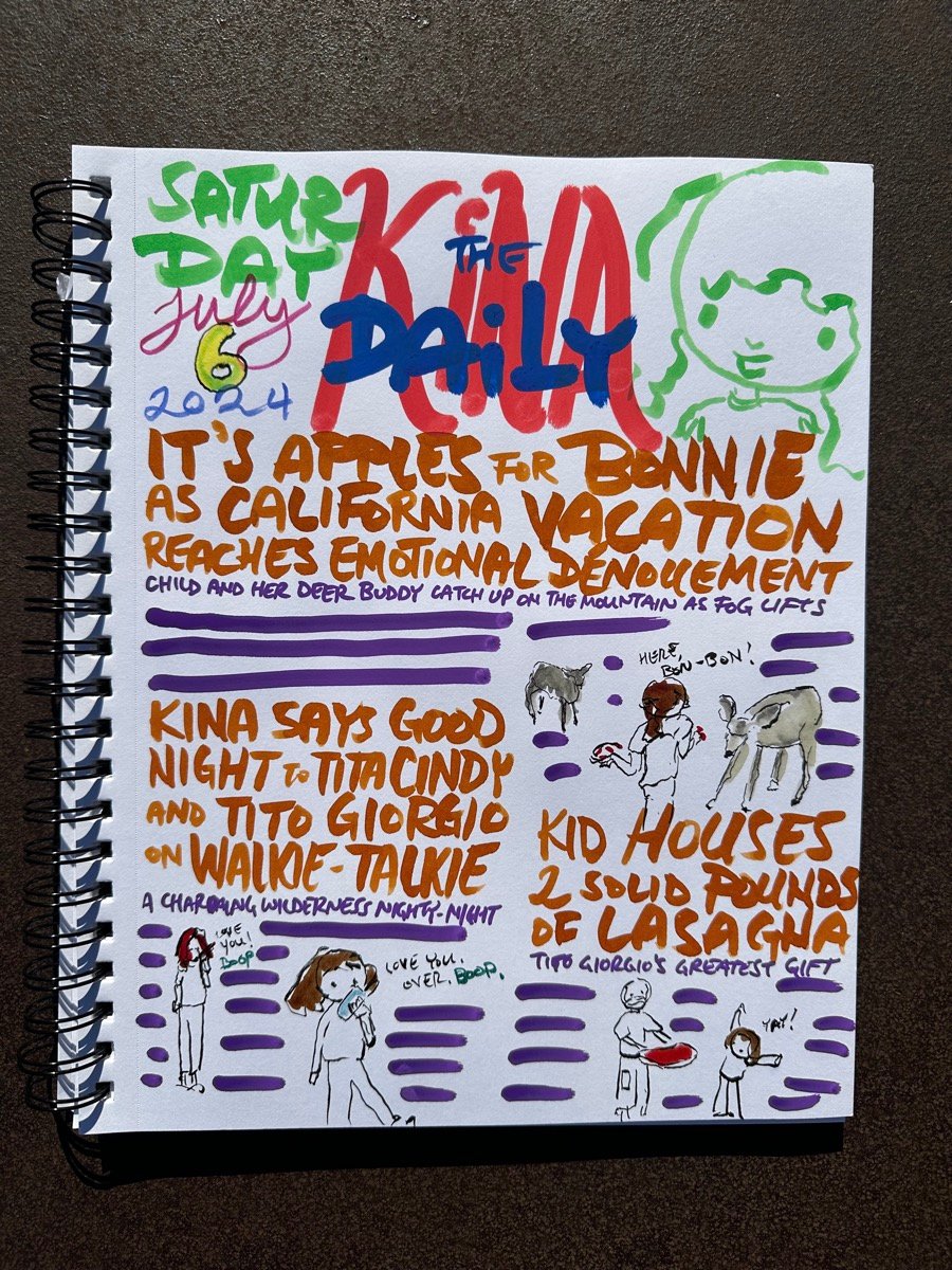 In many ways, this entire trip is about Kina seeing her friend Bonnie the deer. She has been talking about Bonnie for weeks. The very first thing she did on the mountain after our drive from Alameda was call out to her friends until she came, young fawns in tow. Kina had apples, as promised, from the last time they met, and she will have apples again next year.