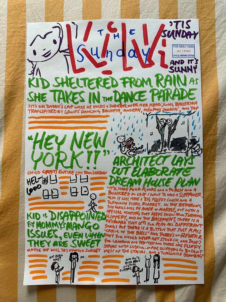 “It’ll have four floors and a porch and a bunkbed in case I want to have a sleepover. Also it will have a big fluffy couch and a turquoise picnic blanket. In the bathroom, the walls will be made of marble, but with a special coating that keeps them from turning slippery, and in the basement, there is a keyboard that lets you play all different songs but there is a button that just plays ‘Carol of the Bells’ and there’s an elevator that you would never get stuck in, and that’s for Grandma and Yeh-yeh and there are fluffy stairs with custom-made slippers so you don’t mess up the stairs. And a turquoise beanbag.“