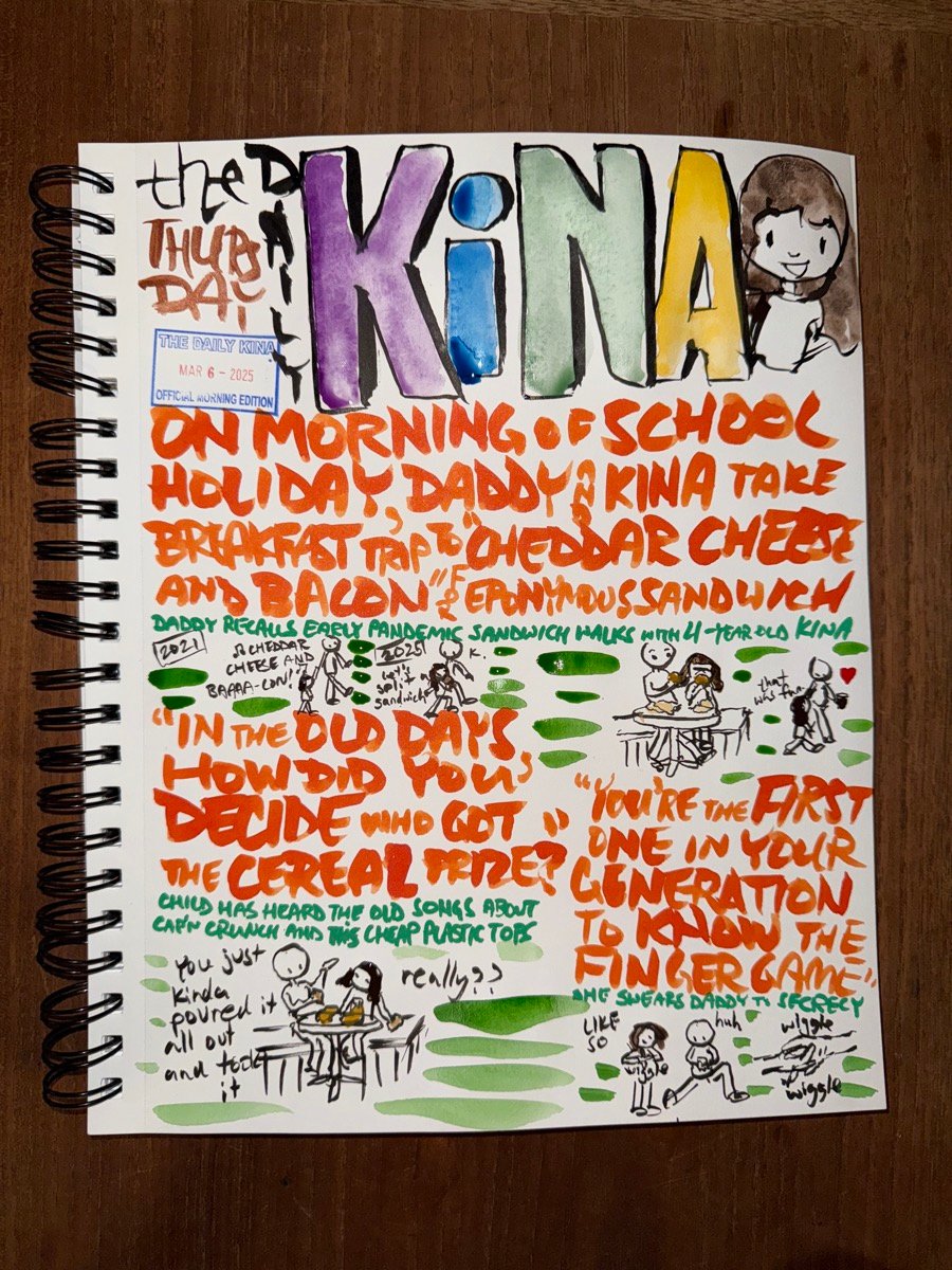 Cheddar Cheese and Bacon makes its first showing in The Daily Kina in a secondary headline on August 13 of 2020, in the height of outdoor dining, when Kina discovered the wonders of a good bacon, egg, and cheese. Then, about a year later, we had a celebratory visit to Cheddar Cheese and Bacon. We haven’t documented a morning visit to the mothership since then, and so it is with great pleasure that Kina and I walked to the local coffee shop for a sandwich on a day off from school, splitting it straight down the middle and talking about dogs. I missed it, really.