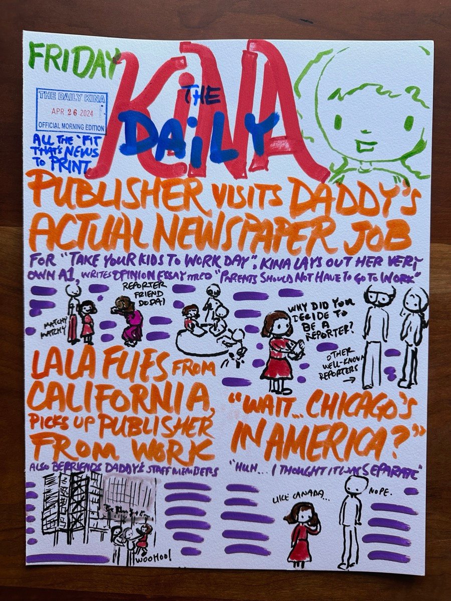 I am not sure what Kina liked most—the activities they scheduled for her at work, including exclusive interview opportunities with famous journalists, the morning bike ride to the office, or the chance to wear matching outfits with me in public. She spent the morning today interviewing Laurea about her job, so the activities must have made an impact. Journalism forever!