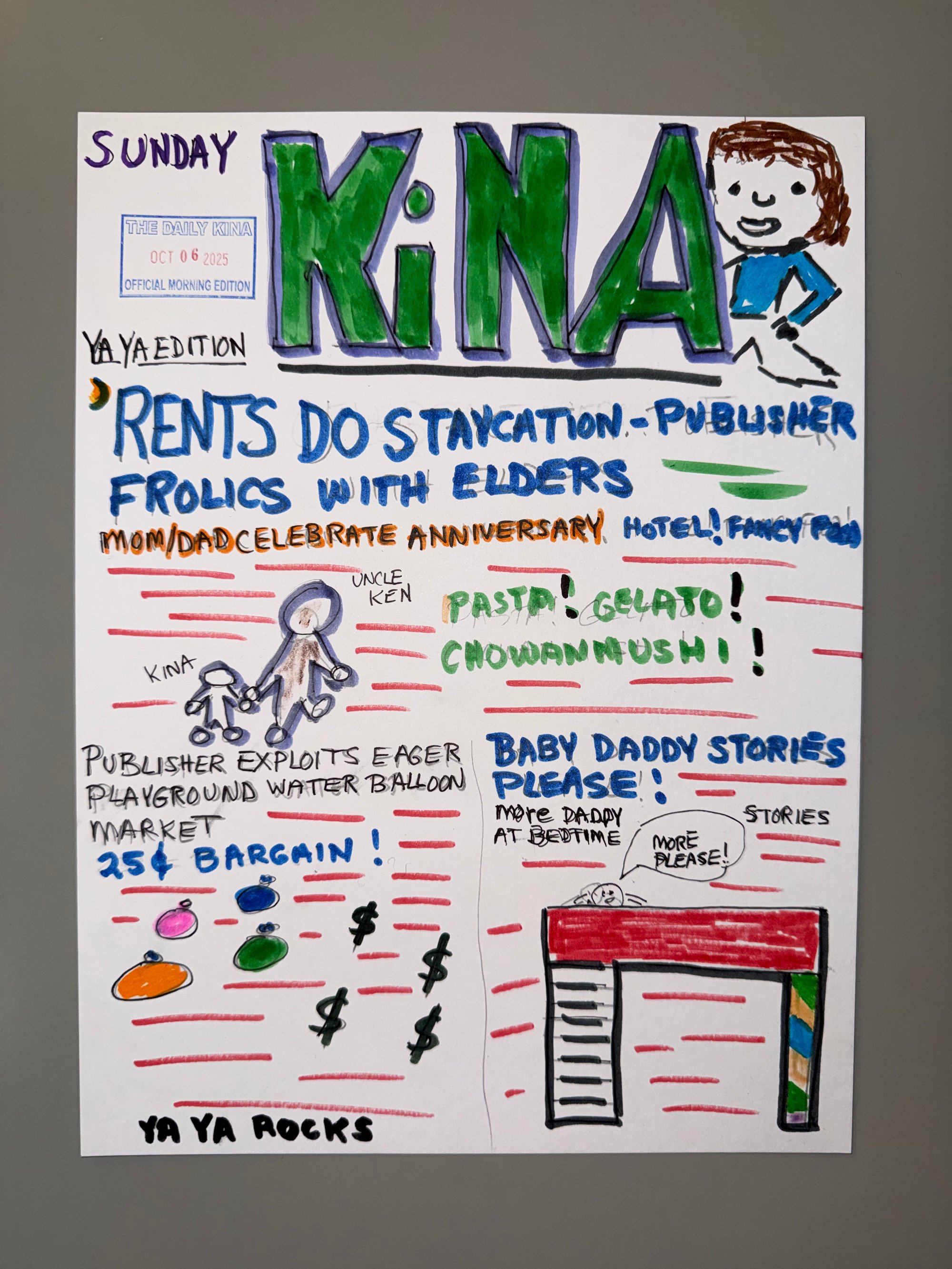 Thanks to Ya-Ya, who is “Yeh-Yeh” in our style guide, for covering during our staycation.