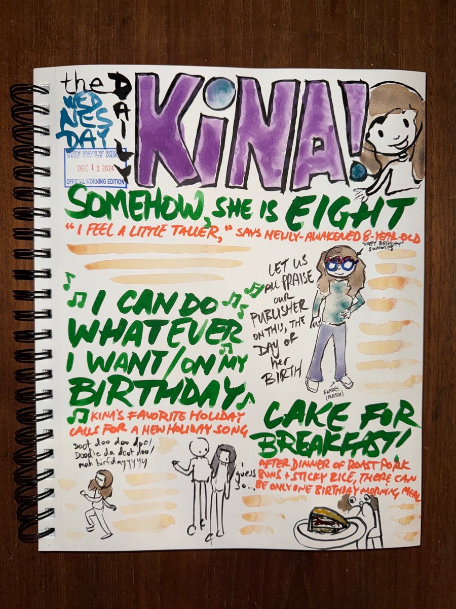 I am breaking all the rules by skipping over the four issues I have forgotten to send, but it is Kina’s birthday, and the fiscal repercussions of not sending the publisher’s birthday edition on time are quite severe. I am so so so so so so proud of her. I expect you are, too.