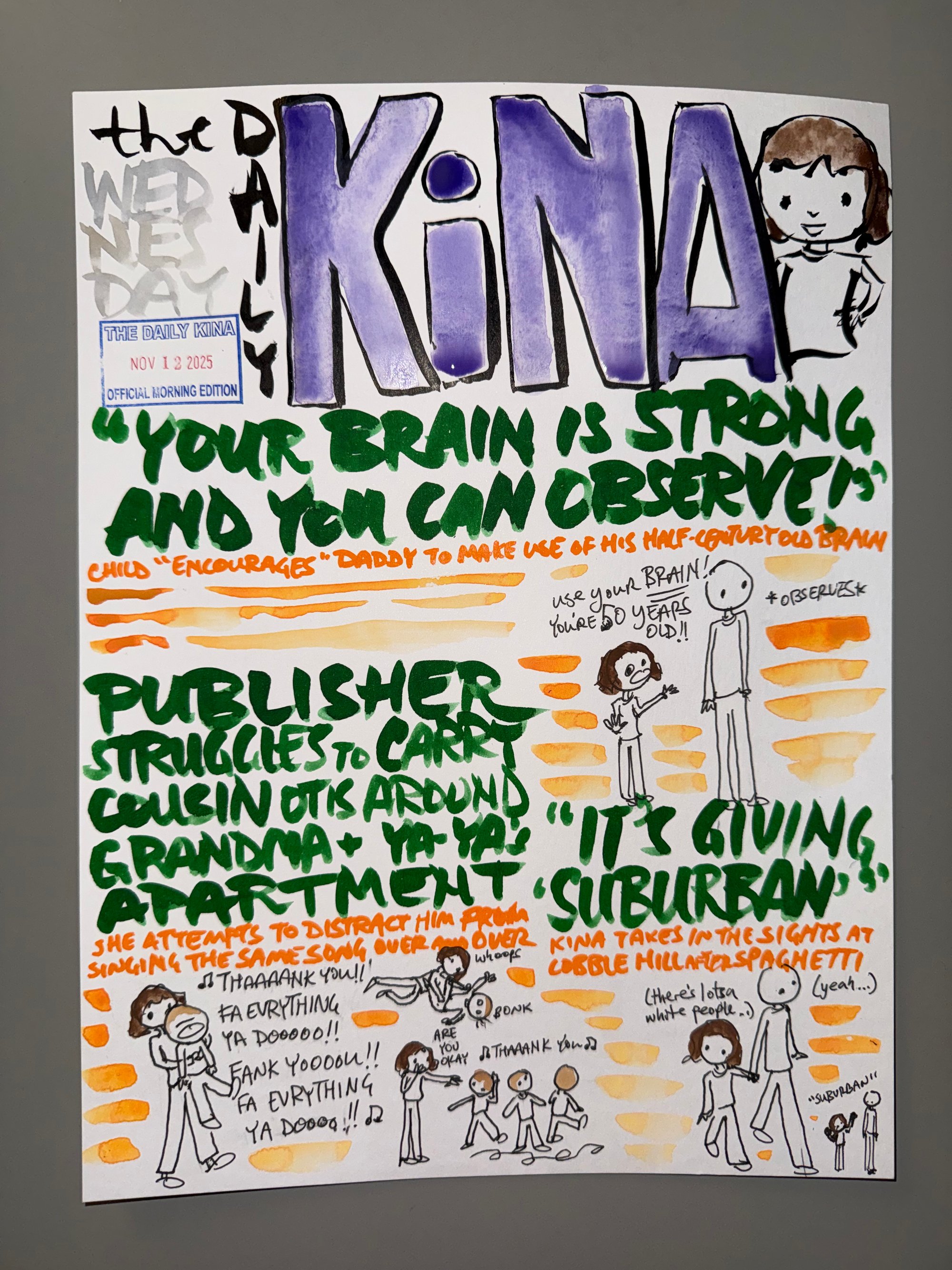 I don’t know that I would have observed that Cobble Hill was “suburban” on my own, but Kina’s logic is sound. My fifty-year-old brain.
